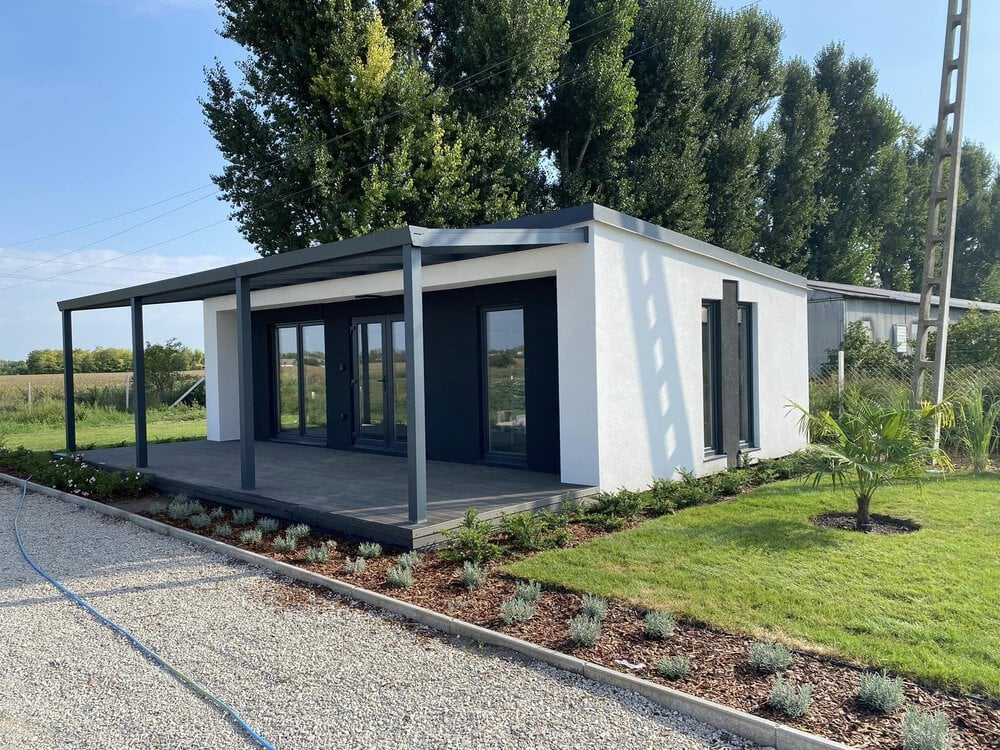 Négyévszakos, egész évben kényelmesen használható prémium modulházaink alumínium terasszal kiegészítve szolgáltató épületnek, nyaralónak vagy akár nagyobb irodának is tökéletesen megfelelnek, állandó lakhatásra alkalmasak. Korszerű szigetelésének köszönhetően fenntartása energiatakarékos. Nemesvakolat külső borítása elegáns megjelenésű, így harmonikusan illeszkedik bármilyen környezetbe. Moduláris kialakítása rugalmas és költségtakarékos lehetőséget ad a bővítésre, akár már meglévő ingatlanhoz kapcsolva.