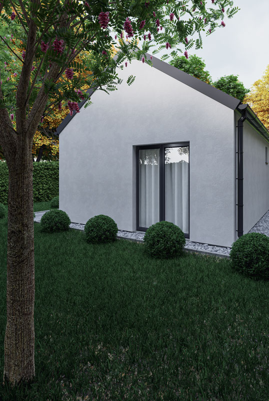 Az A. típusú kétszobás családiház megtervezésekor egyaránt nagy figyelmet kapott a funkcionalitás és az esztétika.
