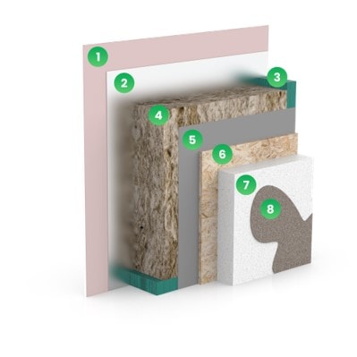 Vázszerkezeten belül 15 cm kőzetgyapot szigetelés